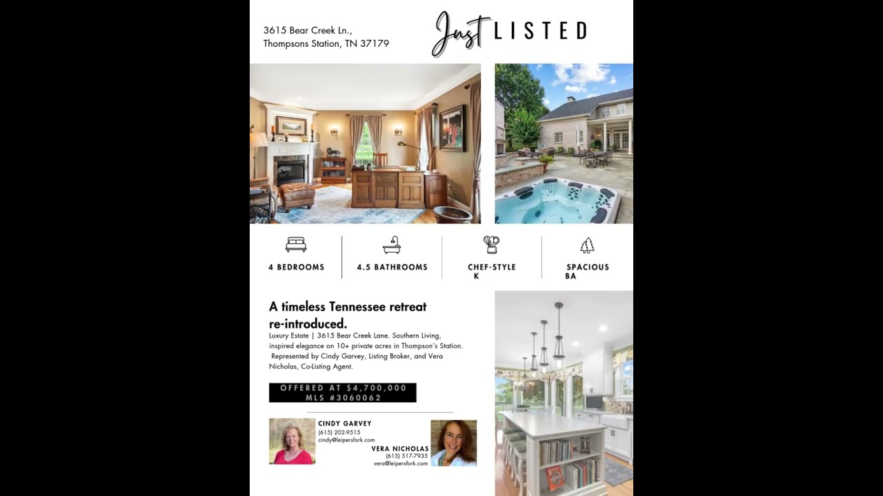Luxury Re-Listing | 3615 Bear Creek Lane | Thompson’s Station | MLS #3060062