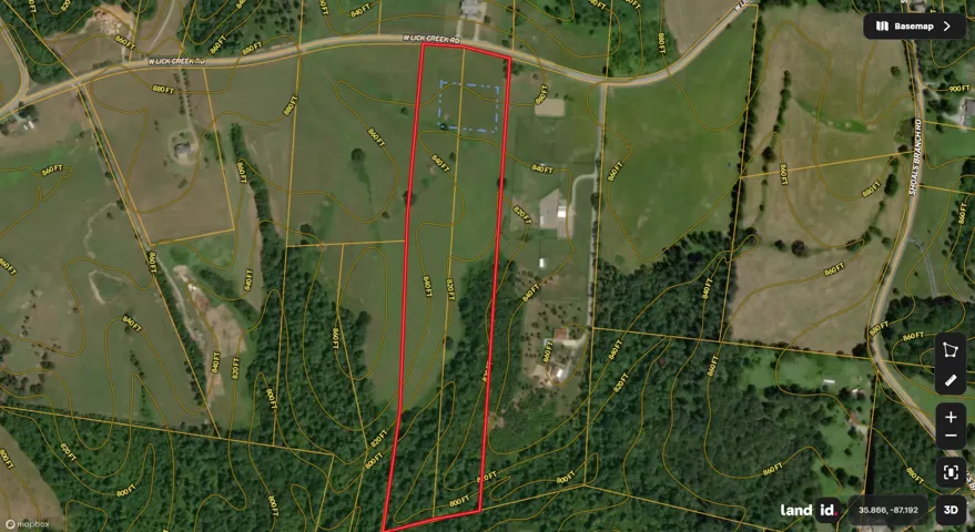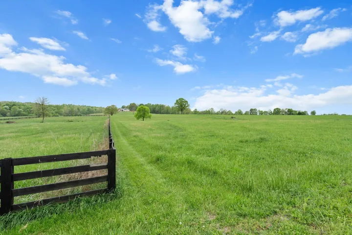 Very very gently rolling pasture with 4 board fence across the front and down the right boundary. Woods in the way back with a small creek. Preliminary perk only at this time but Seller is proceeding with final approvals.