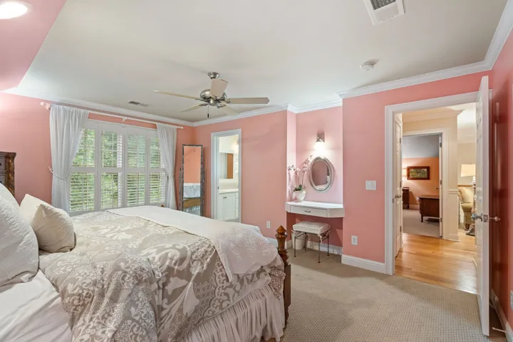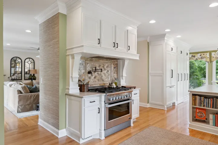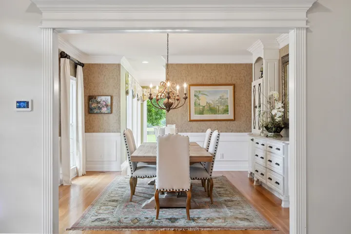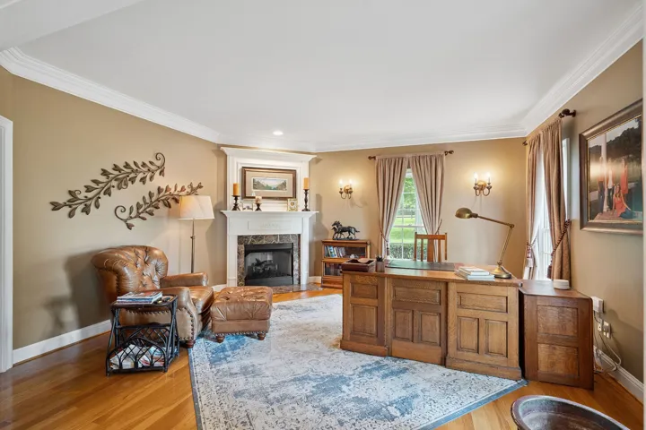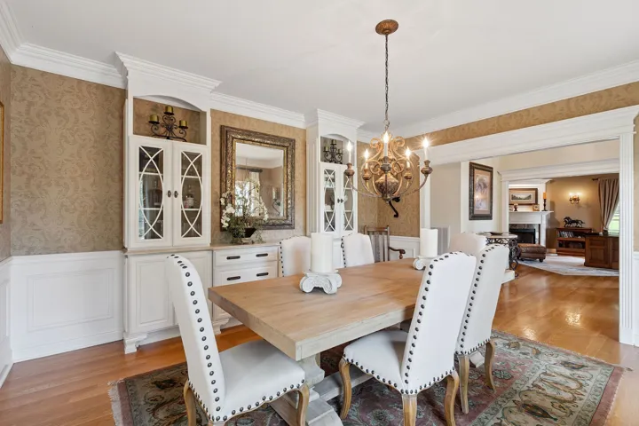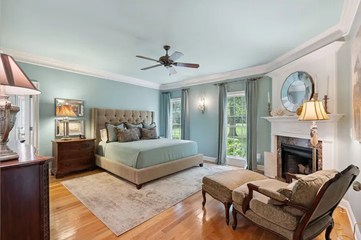 Encompassing 5,309 square feet, the residence is a rare blend of elegance and serenity. A stately, whitewashed brick exterior welcomes you into a dramatic two-story foyer, where wide-plank hardwood floors and three fireplaces infuse warmth and character throughout. The main-level primary suite offers its own fireplace and a tranquil, retreat-like ambiance, complemented by a fully renovated primary bath completed last year.