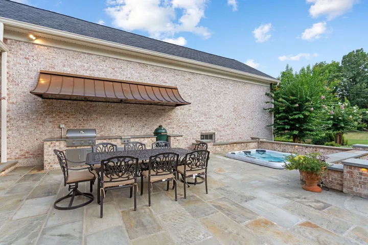 Outdoors, the home continues to impress with a fabulous outdoor kitchen, spa, and expansive entertaining patio, all designed to maximize enjoyment of the property’s natural surroundings.