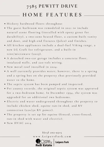 Looking for the perfect country getaway or short-term rental opportunity? Welcome to your private retreat tucked away on 7.35 wooded acres just 3 miles off Pinewood Road. This 1,773-square-foot home offers the ideal balance of peace, privacy, and manageable space, a quiet haven surrounded by nature yet still within reach of town amenities. Whether you envision an Airbnb, weekend escape, or full-time residence, this property offers the charm and seclusion of true Tennessee countryside living.