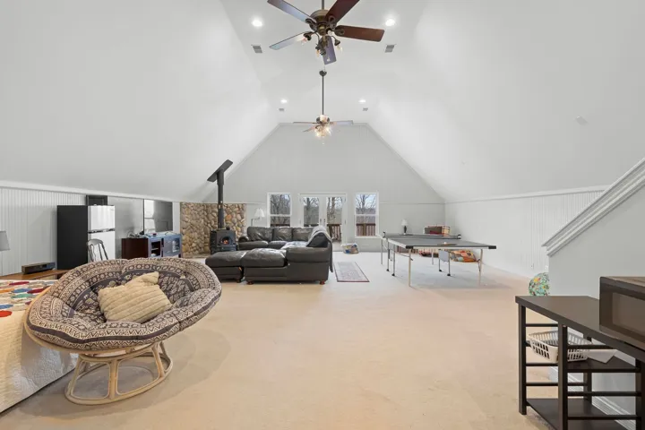 Outdoor living is exceptional: relax on the Fab Porch Company screened porch, gather on two expansive decks, or unwind on the patio while taking in sunset views and the peaceful Tennessee landscape. A sports court adds a rare recreational element, while practical upgrades include a 4-car garage, abundant storage, a propane generator, and a storm cellar.